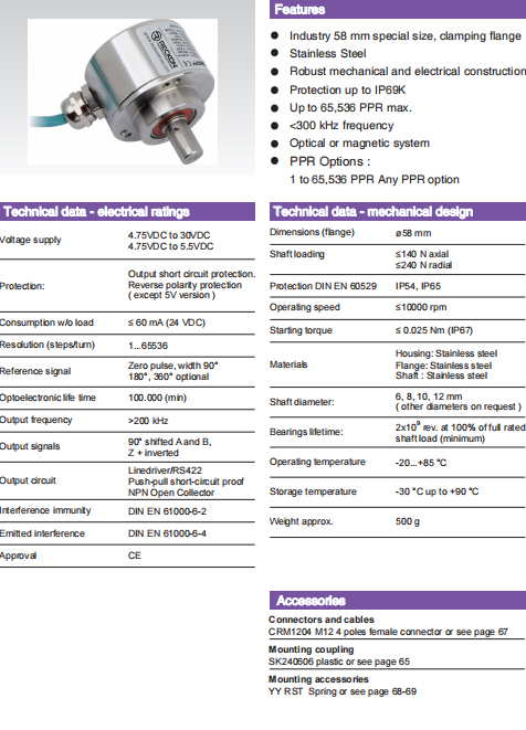 空載電流:≤ 60mA(24 VDC)   分辨率(脈沖數/轉):  1... 65536